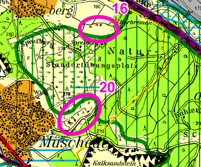 Des Weiteren eine Fläche am Flammberg, unterhalb vom Spreiberg. Und eine Fläche im Herdringer Feld, etwas oberhalb, dort wo man zu Fuß zur Freilichtbühne wandern kann.