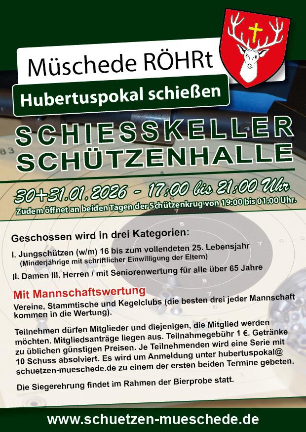 Nach der Premiere vor drei Jahren startet die Schützenbruderschaft St. Hubertus Müschede in diesem Jahr mit dem Schießen um den Müscheder Hubertuspokal im Schießkeller der Schützenhalle Müschede wieder voll durch.